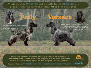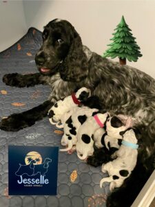 In October we welcomed the Tree Litter!  7 beautiful and healthy blue roan English Cocker Spaniels.  4 boys and 3 girls.